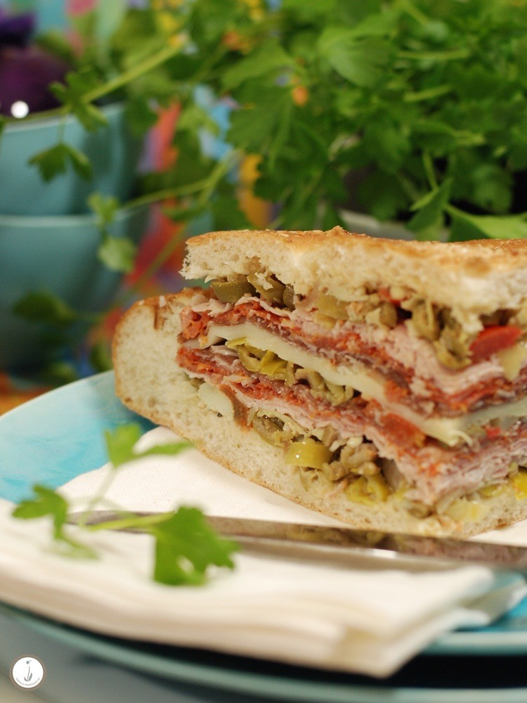 Muffuletta werden in New Orleans in der Central Grocery nach dem Originalrezept von 1906 oder auch in vielen anderen Straßen-Delis verkauft. Der Begriff kommt aus dem sizilianischen und heisst soviel wie "mit allem, was zwischen ein Sandwich dazwischen passt". So musst Du es auch bei diesem Rezept sehen. Die Basis ist der wirklich wichtige Oliven-Salat, alles andere kannst Du frei Laune kombinieren. Nur wirklich dünn geschnitten muss es sein.